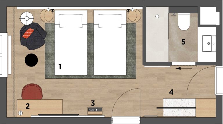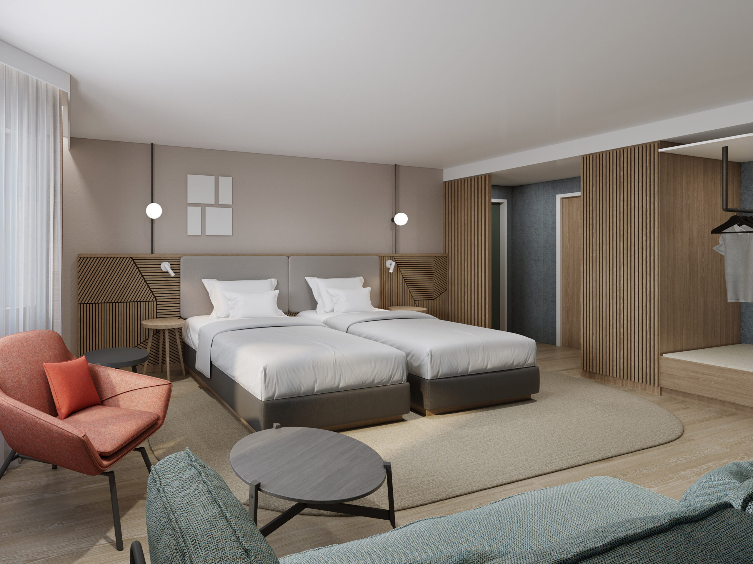 Realisiert wurde das Konzept zunächst auf der ersten Gästezimmeretage als Auftakt zur schrittweisen Renovierung aller Etagen – mit Standardzimmern, Executive-Zimmern sowie der Neuerrichtung eines barrierefreien Gästezimmers gemäß DIN 18040.